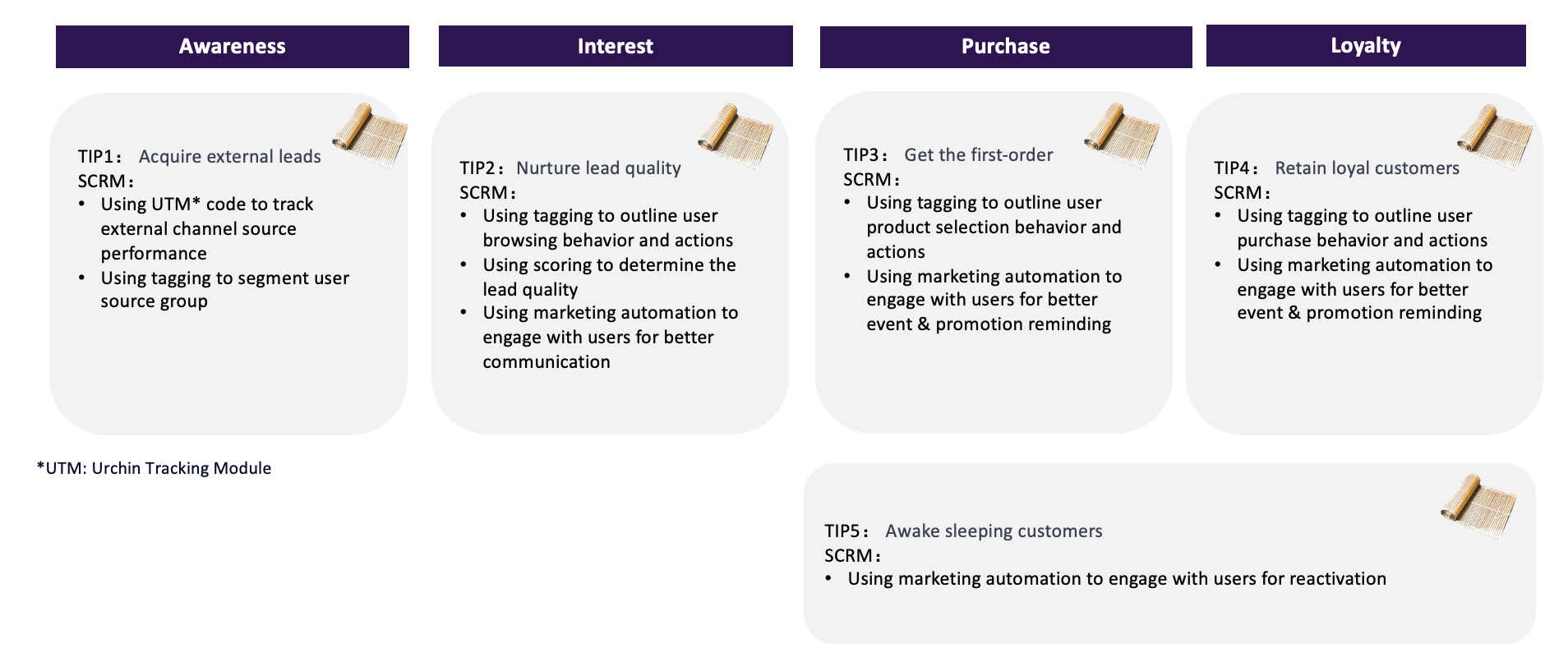 • 5 topics slides for SCRM strategy applied to business scenario
